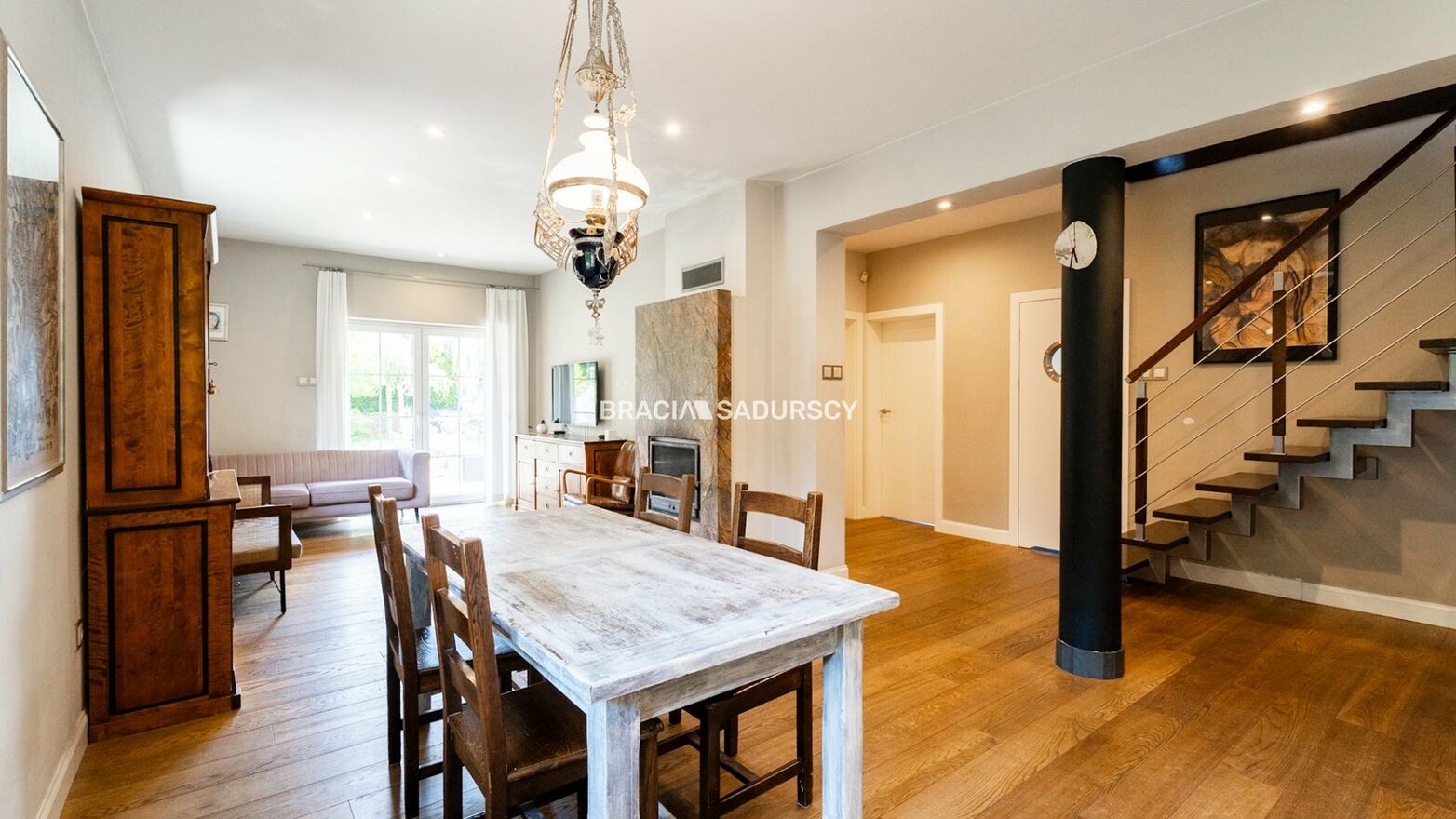 - salon wspólnie z częścią jadalnianą (na podłogach stylowe, dębowe podłogi), wyjściem na przestronny taras (w naturalnych, drewnianych deskach Bankirai)